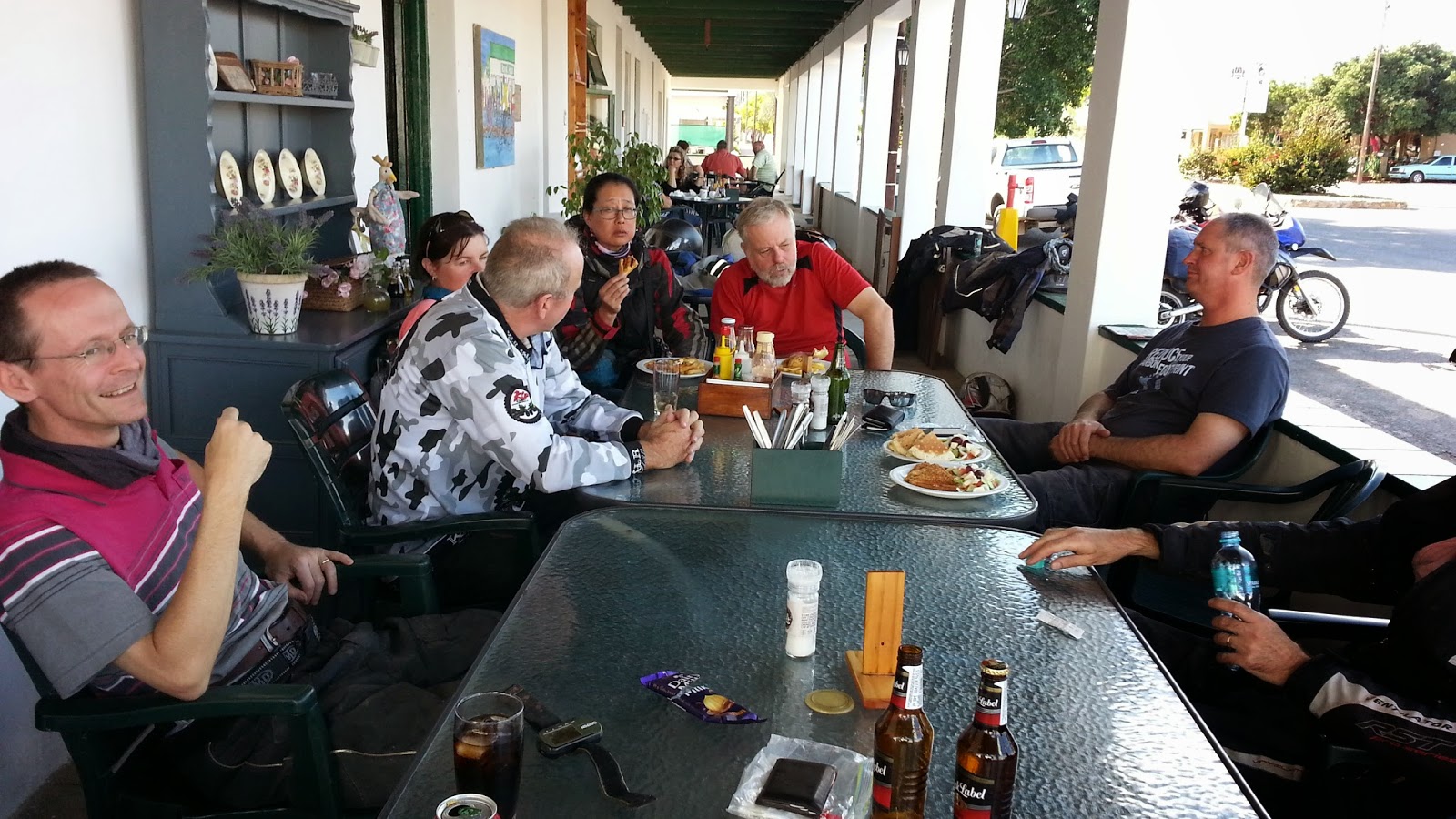 We met up with Charl and Vaatjie on another KLR and GS1200 near Du Toits Kloof and headed off for the longish 500km run to De Rust. The route took us through Scherpenheuwel to Robertson, and then a somewhat overdue breakfast at Montagu.